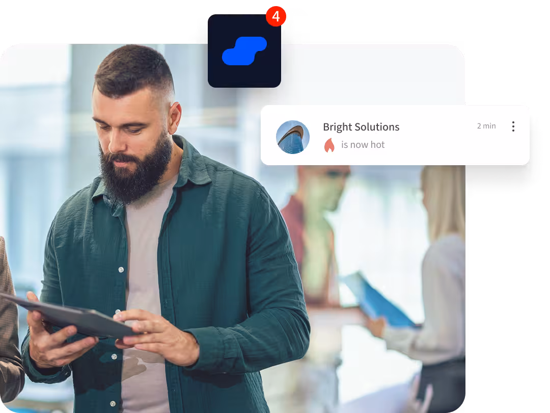 Vea cuándo es el momento adecuado con la puntuación de clientes potenciales que activa notificaciones basadas en el patrón de interacción en directo de un cliente potencial.